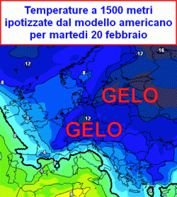 Il modello americano ipotizza per martedi 20 febbraio termiche da brivido per gran parte dei Paesi dell’Europa nord orientale e centrale (terza mappa). Da qui ad un nostro interessamento il passo sarà molto breve, ad iniziare dai settori orientali. Vedremo…