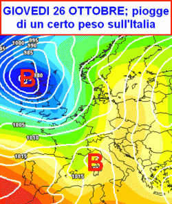 La terza mappa, valida per giovedì 26 ottobre, mostra la traccia di un guasto più incisivo sull’Italia, soprattutto al nord e le regioni di ponente (Sardegna compresa).