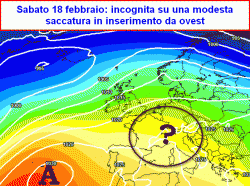 sabato 18 febbraio: possibile veloce passaggio piovoso su nord, Tirreno, isole ma con scarsa attendibilità, nubi passeggeri ma tempo secco altrove.
