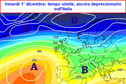 da martedì 28 a venerdì 1° dicembre: possibile peggioramento sull’Italia con arrivo di precipitazioni a partire dai versanti occidentali, in estensione a tutta la Penisola. Neve a quote anche prossime ai 700m al nord, a quote anche inferiori ai 500m al nord-ovest, poi generalmente oltre gli 800-1000m. Al centro e al sud piogge e anche temporali, specie lungo il Tirreno. Neve in Appennino dapprima oltre i 1200m, poi oltre i 1500m, da venerdì oltre i 1000m su nord Appennino.