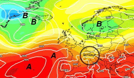 Si conferma una continuazione del trend atlantico sul nostro Continente con alta pressione delle Azzorre distesa verso levante e correnti occidentali più o meno tese che ogni tanto lambiranno il settentrione.