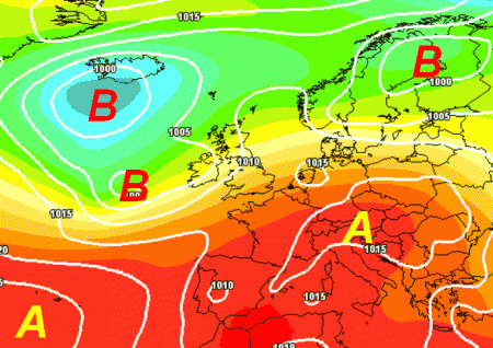 Notate la spinta dell’alta pressione delle Azzorre che dal vicino Atlantico si protenderà fino alla nostra Penisola. Tutto ciò sarà garanzia di tempo stabile e caldo, fatta eccezione per qualche temporale di stagione sui rilievi durante il pomeriggio.