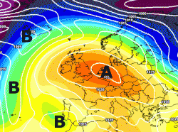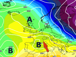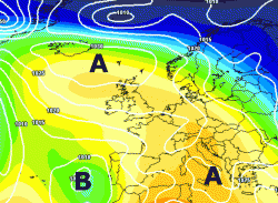 Come vedete dalla cartina, l’Italia risulterà ancora libera da situazioni potenzialmente piovose anche se il campo anticiclonico verrà ridotto a "palude barica", in attesa forse di qualche messaggio piovoso dall’Atlantico.