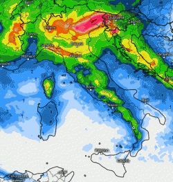 Con questa situazione, la pioggia sarebbe garantita, mentre la neve cadrebbe solo sulle Alpi a quote medio-alte stante la mitezza delle correnti di matrice occidentale.