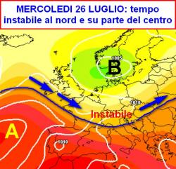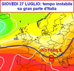 Come anticipato, in un primo tempo verrebbe interessato il settentrione specie tra lunedì 24 e martedì 25 luglio; a seguire i fenomeni potrebbero correre verso le regioni centro-meridionali lasciando fuori solo le Isole.
