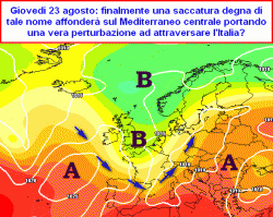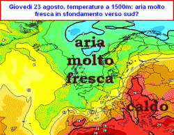 Da giovedì 23 invece il modello americano, peraltro in maniera un po’ estrema, ma comunque in linea con quanto già esposto stamane (quando abbiamo raffrontato tutte le principali emissioni modellistiche) propone l’affondo di una saccatura di quelle serie, che lasciano il segno, con tanta aria fresca pronta a dilagare sulla Francia, poi la Svizzera, la Germania ed infine l’Italia, una bella perturbazione in transito, precipitazioni diffuse e un ricambio d’aria estremamente efficace entro sabato 26 agosto.