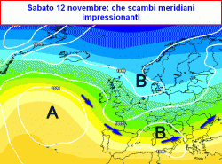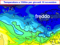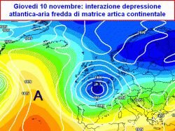 nettamente più basse con risucchio di aria fredda da nord est, conseguente maltempo tardo autunnale sull’Italia con piogge in pianura e neve in montagna.