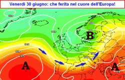 Lo sfondamento dell’aria fresca di origine atlantica nell’area mediterranea porterà con sé inizialmente ancora qualche nota di instabilità sull’alto Adriatico, la dorsale appenninica del centro e sul meridione, ma nel contempo annuncerà anche una parziale rimonta dell’anticiclone, che proverà a riportare la stabilità sull’Italia.