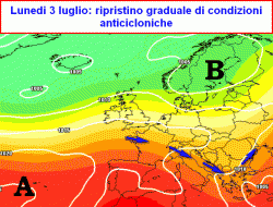 lunedi 3 luglio: passaggi nuvolosi da nord-ovest verso sud est senza conseguenze importanti e prevalenza di sole. Caldo moderato.