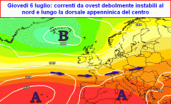 L’attendibilità previsionale è abbastanza buona (55%) sino a lunedì 3 luglio, poi decresce sino al 25% nei giorni successivi.