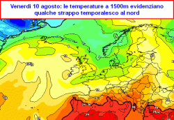 dal 14 al 16 agosto: al nord passaggio di temporali anche violenti a cavallo di Ferragosto, specie a ridosso delle montagne, tempo buono altrove e molto caldo, ma con valori in generale calo dal 16 a partire dal centro Italia.
