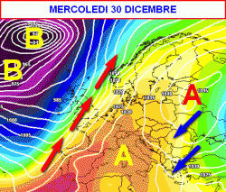 RIASSUMENDO: mercoledì 30 e giovedì 31 dicembre ancora stabilità sull’Italia, con nebbie in pianura, sole e bel tempo sui colli e in montagna, non farà freddo. Venerdì 1 e sabato 2 gennaio instabile al meridione con clima freddo e neve a quote medio-basse, per il resto bel tempo, ventoso per Tramontana. Domenica 3 gennaio ultimi annuvolamenti al meridione in via di attenuazione, per il resto bel tempo. Lunedì 4 e martedì 5 gennaio probabile fase di maltempo sull’Italia con piogge e neve anche a quote medio-basse al centro-nord.