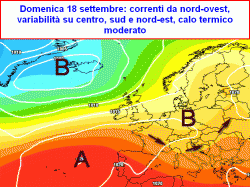 lunedì 19 settembre, martedì 20 settembre: temporaneo miglioramento ma sempre in un contesto variabile al nord con passaggi nuvolosi, specie lungo le Alpi e sulla Liguria con isolate piogge. Tempo migliore altrove. Clima gradevole.