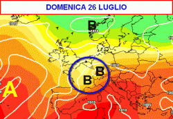 Confermata la rinfrescata al centro-nord durante l'ultimo fine settimana di luglio.Essa potrebbe aprire una fase meteorologica più normale, con un caldo maggiormente sopportabile e qualche temporale in più.