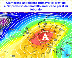 Potrebbe sembrare (e potrebbe anche trattarsi) di uno scherzo di Carnevale (quello ambrosiano termina sabato) ma potrebbe anche trattarsi di una pausa tra la modesta irruzione fredda prevista per la prossima settimana e quella più corposa dei primi giorni di marzo, anche questa però ridimensionata dal modello (pur trovando conforto in diverse corse cosiddette parallele).