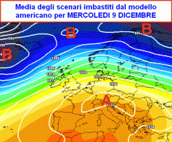 Quest’oggi si fa fatica a trovare scappatoie anche a lungo termine. Cerchiamo, allora, di proporre una linea di tendenza maggiormente credibile, che tenga conto di tutti gli scenari imbastiti dal modello americano questo pomeriggio. La prima carta si riferisce a mercoledì 9 dicembre.