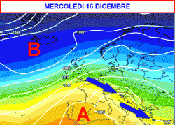 Tra lunedì 14 e mercoledì 16 dicembre un po’ di variabilità con qualche precipitazione sull’Italia e temperature in moderato calo.