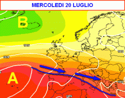Volendo andare oltre, un lieve ritiro del tessuto anticiclonico dall’Italia sarà possibile dopo il giorno 20 luglio (seconda mappa).