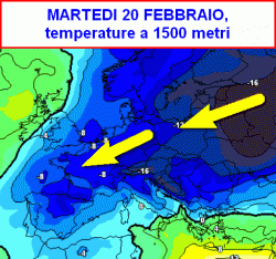 Il nostro Continente verrebbe interessato da una circolazione retrograda, ovvero da est verso ovest, con successivo trasporto di nuclei gelidi.