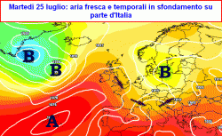 Quando il nord Europa comincia a raffreddarsi (e a fine luglio il sole non è più quello di giugno) cominciano a vagare da ovest ad est dei vortici depressionari piuttosto seri che, appena rallentano un po’ nella loro progressione da ovest ad est, cercano di approfittare di qualche faglia nel tessuto anticiclonico, per portare la loro aria fresca verso sud.