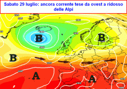 sabato 29 luglio e domenica 30 luglio: al nord nuvolosità irregolare con qualche rovescio o temporale su Alpi e Prealpi, altrove bel tempo e caldo moderato.