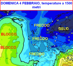 Eccoci alla giornata di domenica 4 febbraio. Sul vicino Atlantico dovrebbe ergersi un blocco e sul fianco orientale della struttura bloccante scenderà l’aria fredda.
