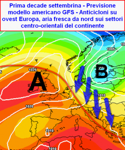 Il quadro termico subirebbe un andamento altalenante come è logico che sia quando nel giro di poco tempo assistiamo ad uno stravolgimento generale della circolazione atmosferica in grado di proporre scenari previsionali completamente diversi. Nella prima decade di settembre l’impostazione prevalentemente settentrionale dei venti in quota, agevolerebbe la discesa dell’aria fredda dalle alte latitudini settentrionali sin verso i settori basso mediterranei, laddove andrebbe concretizzandosi una flessione piuttosto sensibile delle temperature. Flessione termica meno sensibile al nord, in quanto sinora esclusa dalle parentesi di caldo più importanti che invece hanno riguardato il meridione.