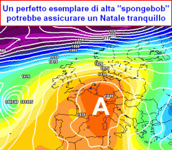 C’è qualche dubbio tra Natale e Santo Stefano, circa l’incidenza di una massa d’aria fredda in movimento lungo l’Adriatico, con qualche riflesso in termini di precipitazioni nevose lungo la dorsale appenninica, ma rimane un’ipotesi un po’ fumosa. Il nostro principale modello di riferimento insiste poi nel piazzare un cellulone anticiclonico stile "spongebob", cioè a forma di spugna su gran parte del centro Europa e dell’Italia sino alle fine dell’anno.