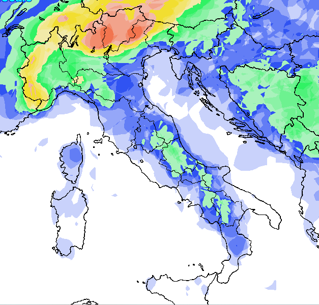 Infine, ecco la probabilità di pioggia in Italia prevista oggi per la giornata di lunedi 12 agosto: