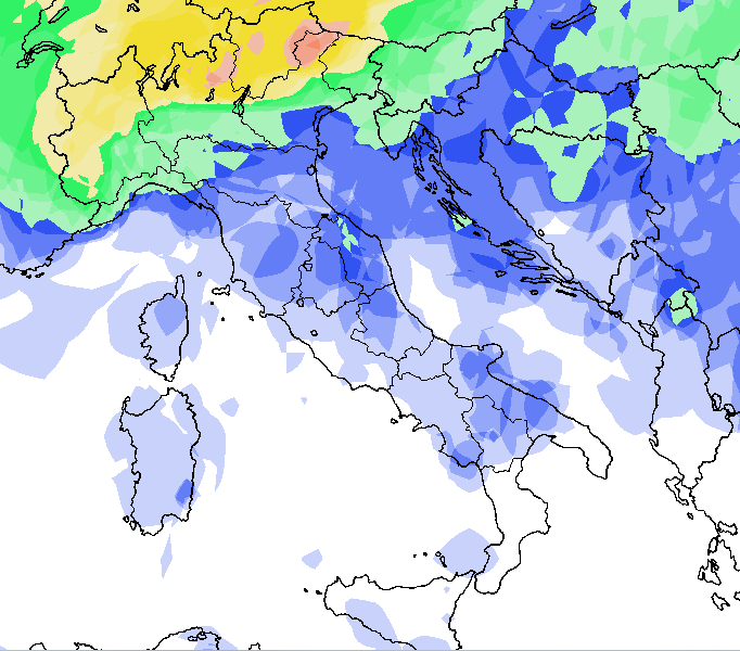 Notiamo come la probabilità maggiore di avere temporali sarà confinata su Alpi, Prealpi ed alte pianure. Qualche temporale di calore andrà in scena anche lungo la dorsale appenninica nelle ore pomeridiane, per il resto la probabilità di fenomeni sarà molto bassa o nulla.
