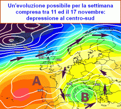 Dietro l’affondo perturbato che dovrebbe intervenire nel corso del prossimo fine settimana, potrebbe scavarsi una depressione sulle regioni centro-meridionali, pronta a determinare una nuova fase di maltempo tra lunedì 11 e mercoledì 13 novembre.