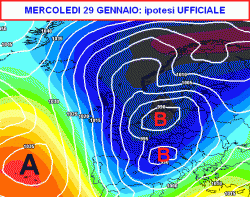 La cartina che vedete non è un run estremo del modello americano. Si tratta della corsa ufficiale partorita dal run di mezzogiorno e valida per la giornata di mercoledì 29 gennaio.