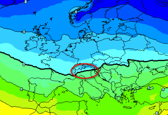 Potrebbe nevicare a bassa quota? Se esaminiamo la media termica degli scenari a 1500 metri imbastita sempre dal modello americano questo pomeriggio per la giornata del 31, notiamo una cosa abbastanza interessante: