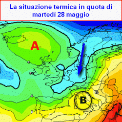 L’anticiclone africano non ha infatti alcuna intenzione di intervenire in modo serio, mentre quello delle Azzorre potrebbe far visita al Mar di Norvegia verso fine mese, innescando un importante scambio meridiano di calore: in altre parole dal nord Europa scenderebbe un nuovo carico di aria fredda, diretto al centro del Continente ed in parte anche al Mediterraneo centrale, dove entro martedì 28 andrebbe scavandosi una depressione foriera di moderato maltempo, soprattutto sottoforma di temporali e soprattutto di un vistoso calo delle temperature.