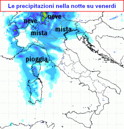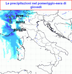 giovedì 20 dicembre: nubi in aumento al nord e sulla Toscana e dalla sera prime precipitazioni a partire da ovest, nevose sino a 300m, ma localmente pioggia mista a neve sino in pianura. Maltempo anche al centro entro notte con piogge. Al sud ancora schiarite.