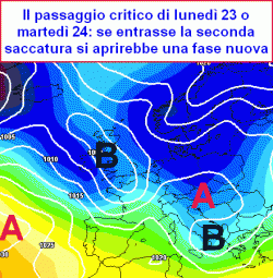 Lunedì 23 il nodo cruciale della stagione: si torna alla corrente a getto sparata come suggerito improvvisamente dai modelli odierni, con l’alta pressione a contendersi il possesso del Mediterraneo insieme alla coda di qualche fronte atlantico, o un ramo del vortice polare entrerà nuovamente da nord-ovest rinnovando condizioni dinamiche e pronte a qualsiasi soluzione, anche a quella, di un anticiclone scandinavo in formazione per fine mese che farebbe pensare ad un febbraio con i fiocchi.