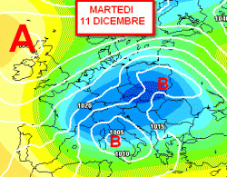 A titolo di esempio, vi mostriamo la cartina di previsione valida per la giornata di martedì 11 dicembre.