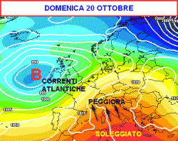 A partire dalla giornata di domenica 20 ottobre, l’azione di erosione delle correnti atlantiche inizierà a dare i primi frutti sulle nostre regioni settentrionali. Qui arriverà qualche pioggia, che lunedì potrebbe estendersi anche alla Toscana e a parte del Tirreno.