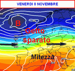 La cartina di previsione valida per la giornata di venerdì 8 novembre non fa che confermare ciò che abbiamo già accennato.