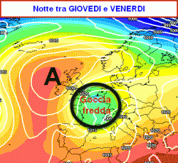 La saccatura, successivamente, evolverà in goccia fredda sull’Europa centro-occidentale, che letteralmente "rotolerà" verso ponente, tentando di congiungersi con una vasta depressione posizionata in Atlantico.