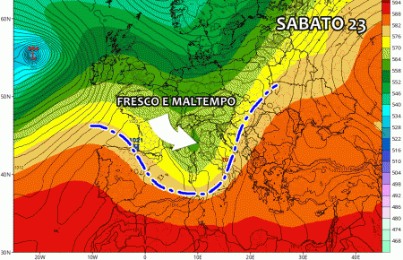La perturbazione atlantica che sancirà definitivamente la fine del grande caldo africano in Italia sta irrompendo proprio in queste ore sul Mediterraneo e sarà questa perturbazione la responsabile di un diffuso calo delle temperature. Il calo termico ha già avuto inizio al Nord, dove si registrano temporali piuttosto intensi e piogge diffuse, mentre il meridione è ancora alle prese con gli ultimi sussulti del clima subtropicale.