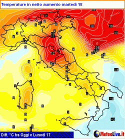 LUNEDI 17 e MARTEDI 18: prevalenza di sole, ma con passaggio di nuvolosità sparsa e poco organizzata lunedì sera al nord e martedì mattina al centro-sud. Temperature in ulteriore rialzo e clima complessivamente gradevole, con valori un paio di gradi sopra le medie del periodo al nord.
