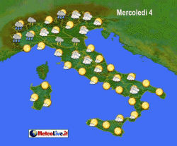 mercoledì 4 luglio: tempo simile, ma con maggiore rischio di temporali sia sulle aree di pianura del nord che sull’Appennino centro-settentrionale, sempre caldo, specie al centro-sud.