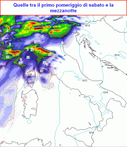 martedì 13 novembre: maltempo sulla Sardegna, specie orientale, incerto sul resto della Penisola, ma con tendenza a peggioramento in Sicilia e dalla sera anche sulla Calabria con forti piogge temporalesche e calo moderato delle temperature.