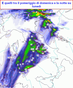 Da notare che proprio dal vertice ormai usurato di questa saccatura andrà ad isolarsi un piccolo vortice depressionario in quota, che scaverà anche un minimo di pressione al suolo a cavallo tra le isole maggiori, che andrà poi muovendosi verso lo Jonio e determinando così maltempo tra martedì e le prime ore di giovedì su gran parte del meridione, ma soprattutto sulle regioni