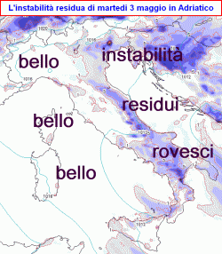 Martedì 3 maggio aria fresca seguiterà ad inserirsi lungo le regioni adriatiche e al sud