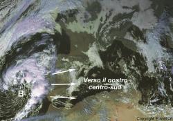 Tra questi occorre prestare particolare attenzione a quello che attualmente possiamo apprezzare al largo del Portogallo (vedi immagine Meteosat qui sotto). Questo infatti, dopo una breve tregua attesa sull’Italia nella giornata di sabato, regalata da un illusorio aumento della pressione, si farà sotto da ovest e si renderà responsabile di un nuovo peggioramento sulle nostre regioni, soprattutto centrali e meridionali ad iniziare da domenica. Partirà così una nuova fase di autentico maltempo che abbraccerà quelle regioni con cieli convulsi, piogge frequenti, temporali e vento forte.