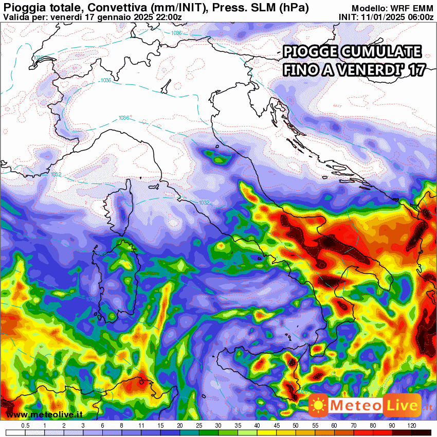 Tutta la pioggia prevista fino al 17 Gennaio: