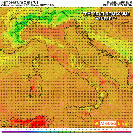 Le temperature saliranno soprattutto al nordovest e sul lato tirrenico centro-settentrionale: le massime potranno sfiorare i 25-27°C, regalando giornate molto miti e gradevoli, certamente favorevoli per scampagnate e gite fuori porta e, perchè no, godersi una giornata in spiaggia. Naturalmente farà molto più freddo dopo il tramonto e fino all’alba grazie ai cieli sereni e all’assenza di vento.