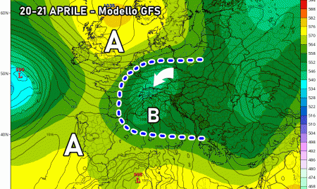 Giovedì 20 Aprile: da confermare una possibile avvezione fredda più marcata al nord Italia, con rovesci e temporali intensi.